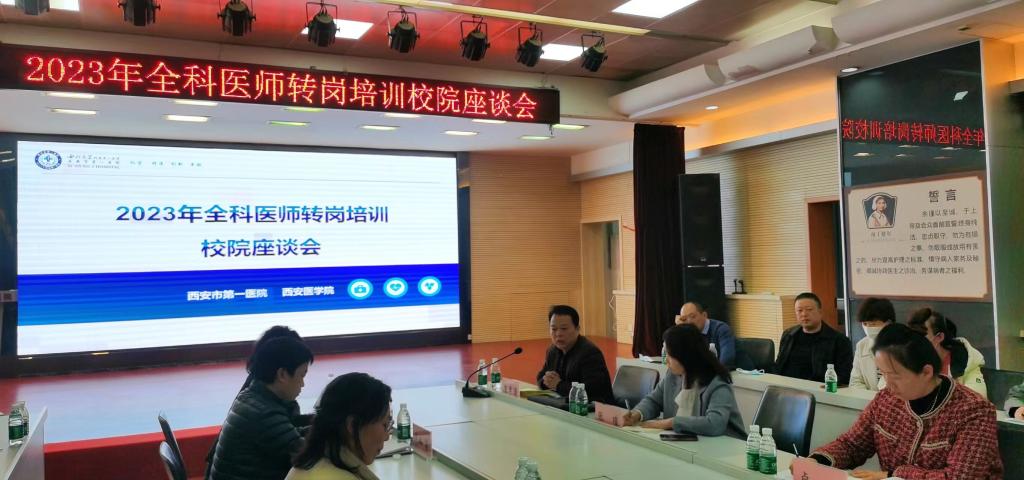 为全面了解陕西省全科医生转岗培训学员的临床实践情况,协助学员及时解决实践过程中遇到的问题,进一步提高临床实践培训质量。3月3日下午,best365足球官网经理崔军海带领培训部工作人员前往西安市第一医院参加陕西省全科医生转岗培训校院座谈会。西安市第一医院总会计师蔡秀莲、科教科主任吴松迪、班主任及培训学员共计33人参加了座谈会。