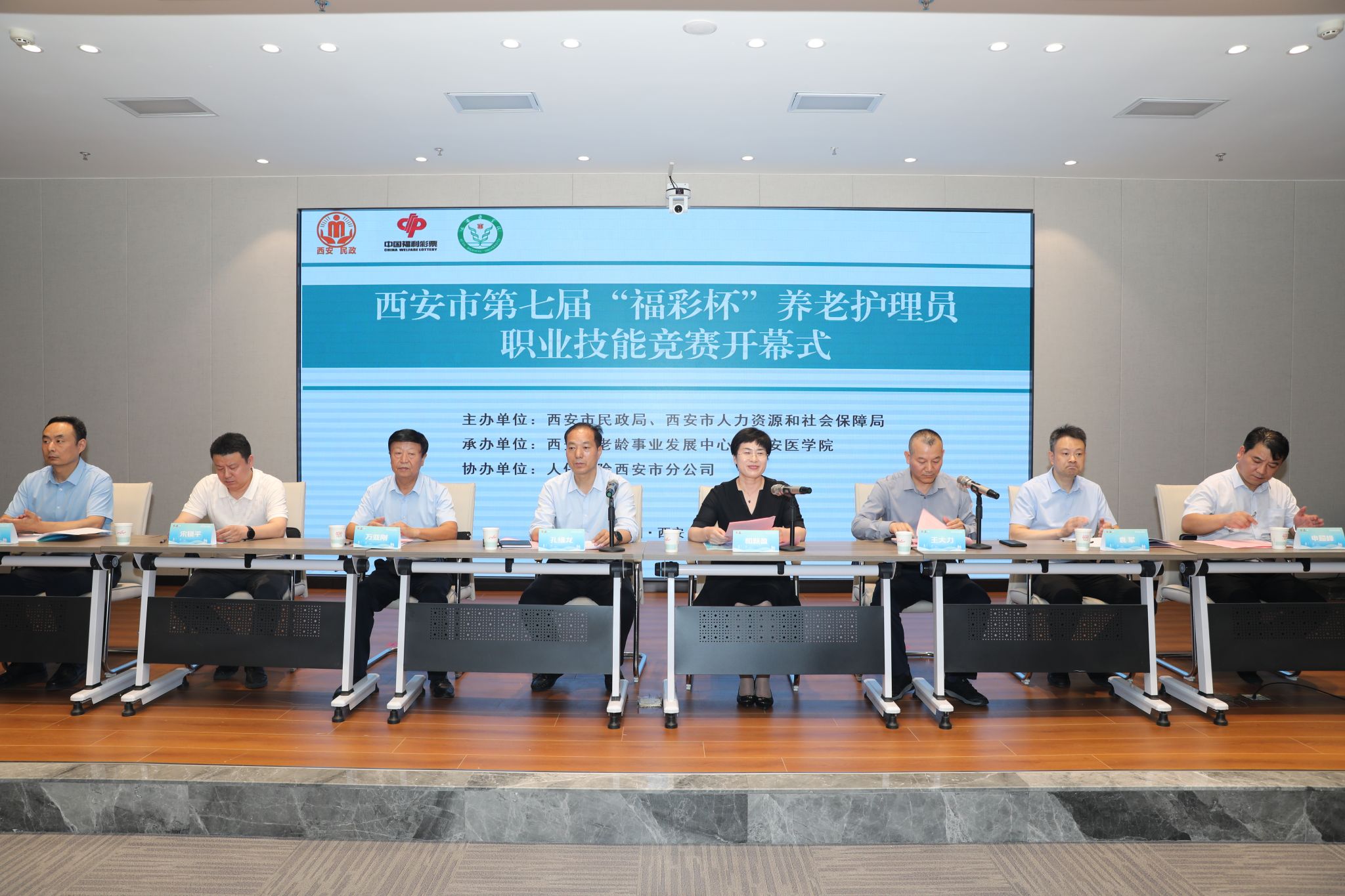 为进一步加强养老服务人才队伍建设,推动养老服务高质量发展,7月9日,由西安市民政局、西安市人力资源和社会保障局共同主办,西安市老龄事业发展中心和公司承办,人保财险西安市分公司协办的第七届“福彩杯”养老护理员职业技能竞赛在未央校区开幕。西安市民政局党组成员、副局长孔维龙,副董事长和新盈,西安市纪委驻市民政局纪检组一级调研员万亚刚,市人力资源和社会保障局职业能力建设处处长宋锁平,市民政局老龄工作处副处长姚峰,市老龄事业发展中心主任申超峰出席开幕式,市民政局养老服务处处长王大力主持。