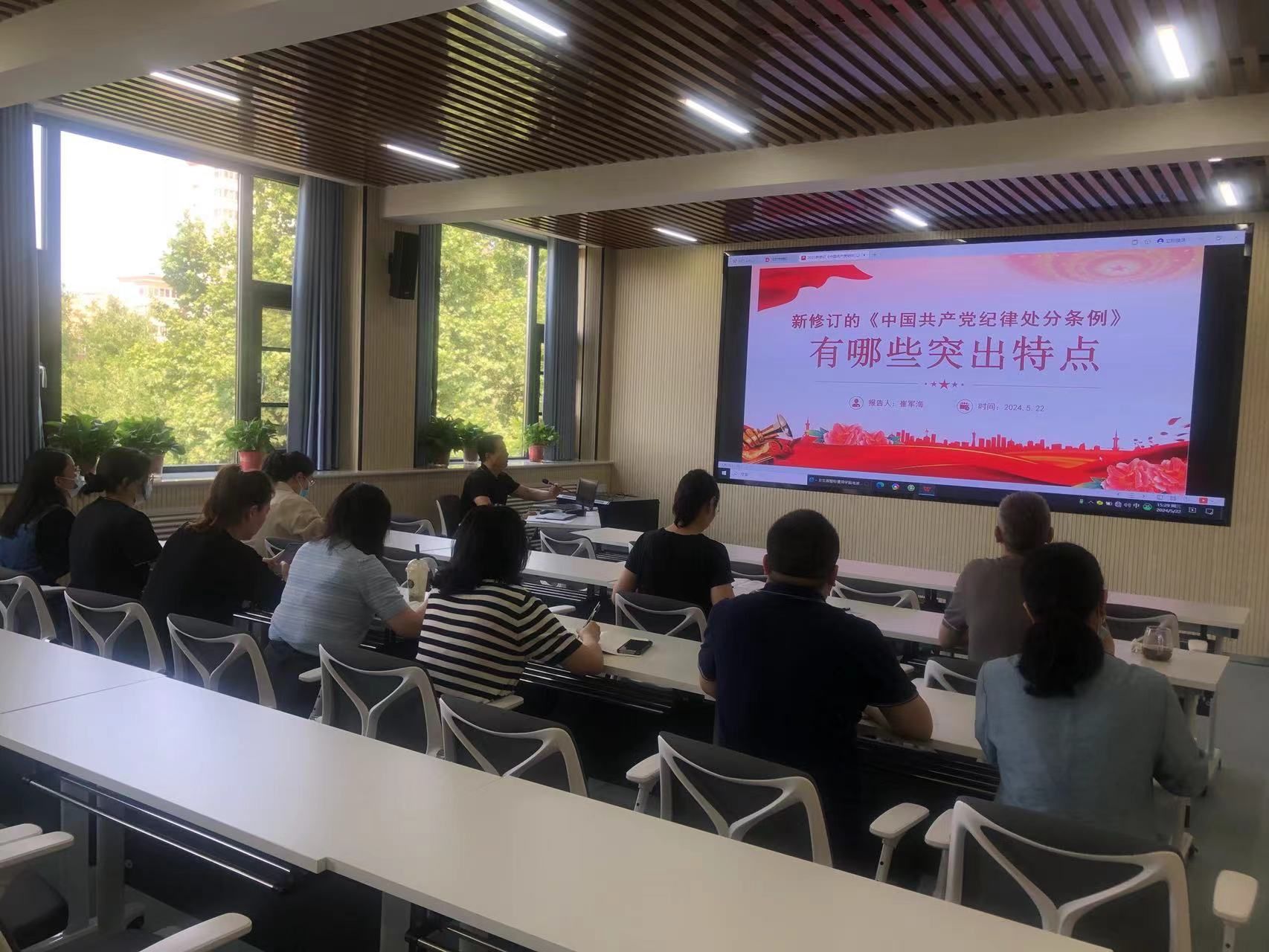 支部书记崔军海以“新修订的《中国共产党纪律处分条例》有哪些突出特点”为题给支部全体党员干部作党纪学习教育专题党课辅导。崔军海指出,党中央对《条例》的修订,释放出以严明纪律管全党治全党的鲜明信号。党课重点围绕深刻认识《条例》修订的目的、特点、作用、实效进行了全面解读和系统阐释,结合违法违纪典型案例,为全体党员干部上了一堂生动的党课,进一步加深了党员干部对新修订《条例》的理解。