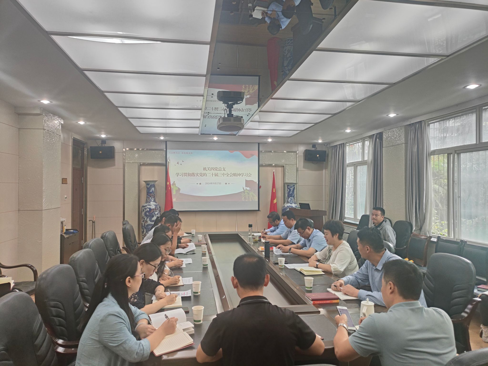 会上,机关四党总支全体党员干部集体学习了《中共中央关于进一步全面深化改革、推进中国式现代化的决定》(第一、第三部分)、《习近平在庆祝中国人民政治协商会议成立75周年大会上的重要讲话》。在深入学习宣传贯彻党的二十届三中全会精神的基础上,机关四党总支以“围绕本职工作、立足本职岗位,谈对全面深化改革的认识”为主题开展交流研讨,宁亚洲、武洁、高超三位同志作交流发言。